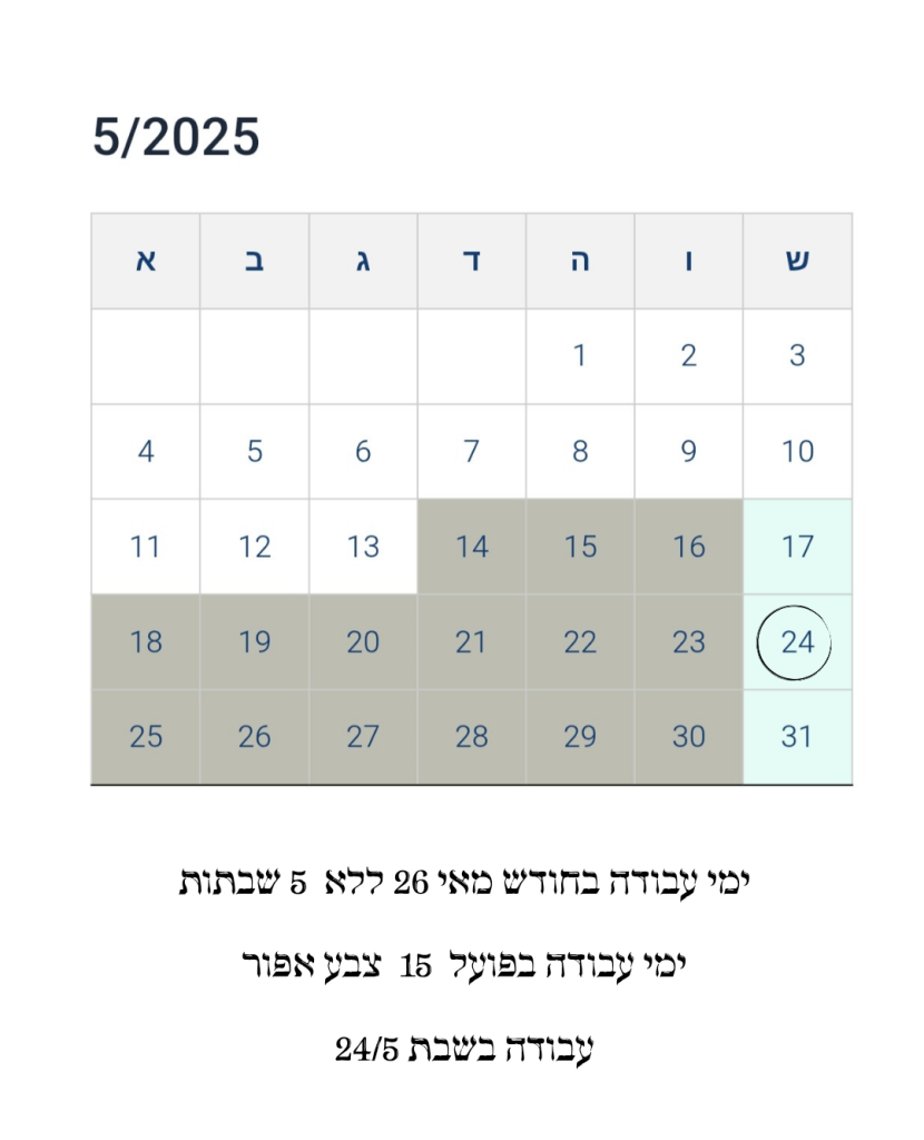 לאחר עיון בלוח השנה 5/2025 (לוח שנה ופירוט שכר בהמשך)